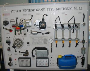 Dodatkowym atutem okazał się nieoceniony dostęp do zasobów wiedzy ludzi i dydaktycznych Wydziału Mechanicznego WAT – w tym tablicy systemu Motronic 4.1 (poniżej), która w sposób interaktywny pokazuje wpływ zmian parametrów pracy wywołanych zmianami sygnałów w czujnikach.