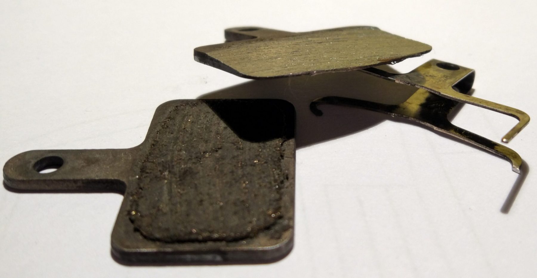 Po wyprawie na Wisłę 1200, podczas której w zbyt szybkim tempie starłem klocki żywiczne hamulca przedniego (zdjęcie poniżej) i niewystarczającej mocy hamulca tylnego na zjazdach, zdecydowałem się na kolejne ulepszenia. Oprócz wymiany klocków w hamulcu przednim zechciałem sprawdzić jak to „nie da się wstawić hamulca tarczowego do Waganta” 🙂