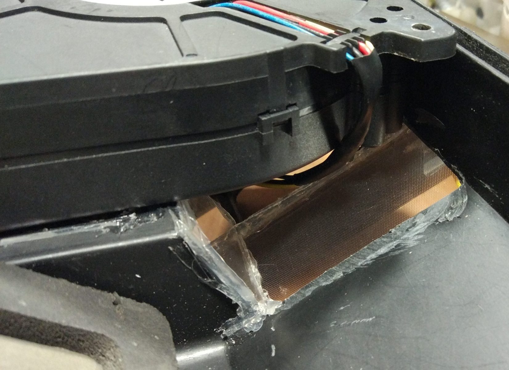Miejsce oczyszczone z farby zostało zabezpieczone antykorozyjnie „czerwonym diagnostycznym” w sprayu. Montaż i pierwsza próba „na sucho” ujawniły drobny defekt – tarcza ocierała swoimi ramionami o jeden z elementów mocowania. Po poprawce szlifierką kątową wszystko w pełni działa.
