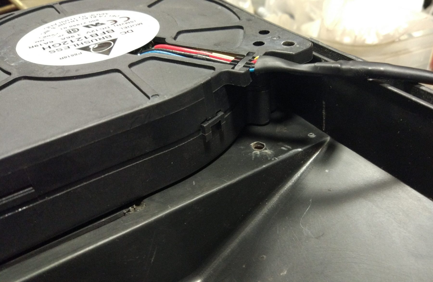 Miejsce oczyszczone z farby zostało zabezpieczone antykorozyjnie „czerwonym diagnostycznym” w sprayu. Montaż i pierwsza próba „na sucho” ujawniły drobny defekt – tarcza ocierała swoimi ramionami o jeden z elementów mocowania. Po poprawce szlifierką kątową wszystko w pełni działa.