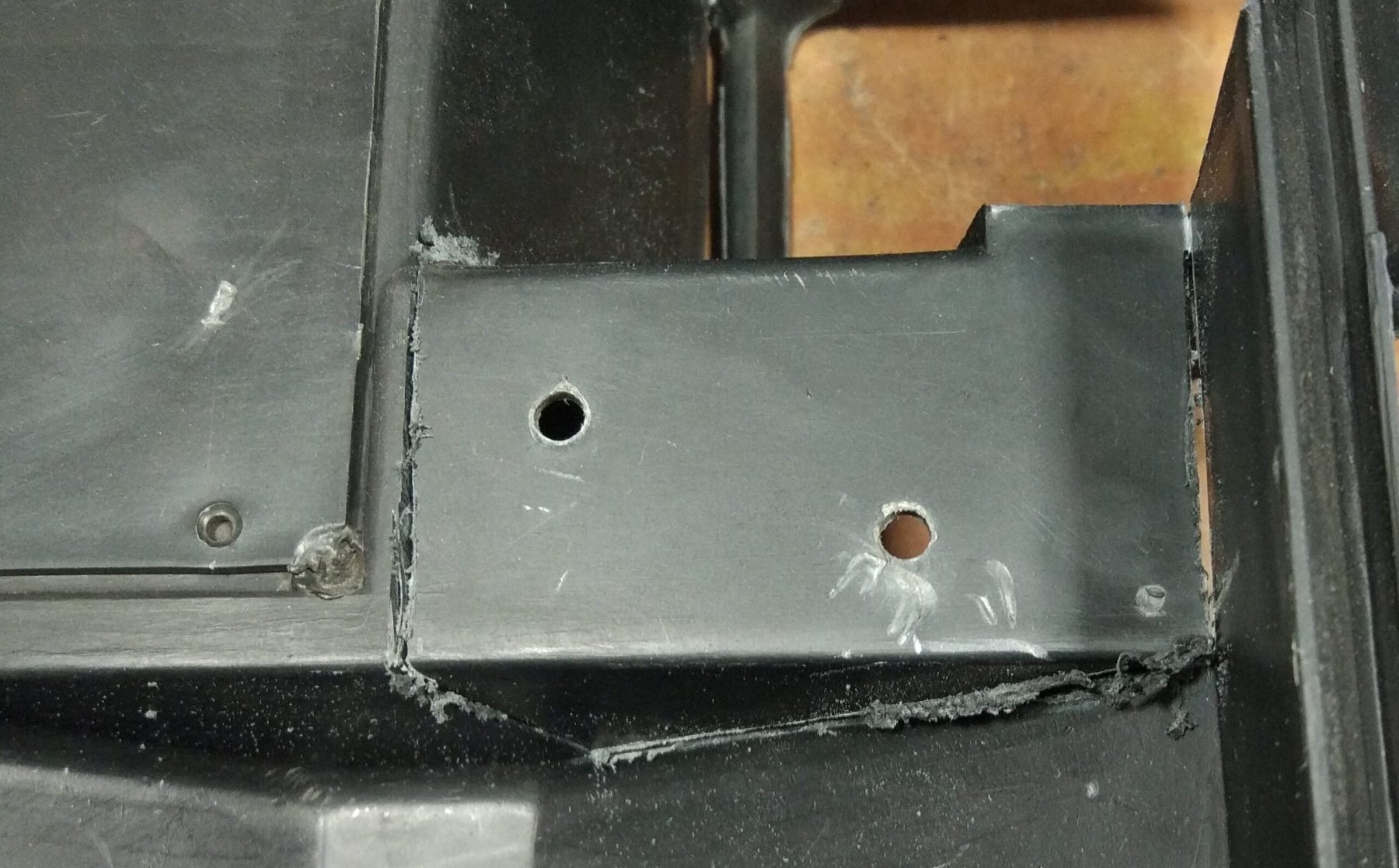 Miejsce oczyszczone z farby zostało zabezpieczone antykorozyjnie „czerwonym diagnostycznym” w sprayu. Montaż i pierwsza próba „na sucho” ujawniły drobny defekt – tarcza ocierała swoimi ramionami o jeden z elementów mocowania. Po poprawce szlifierką kątową wszystko w pełni działa.