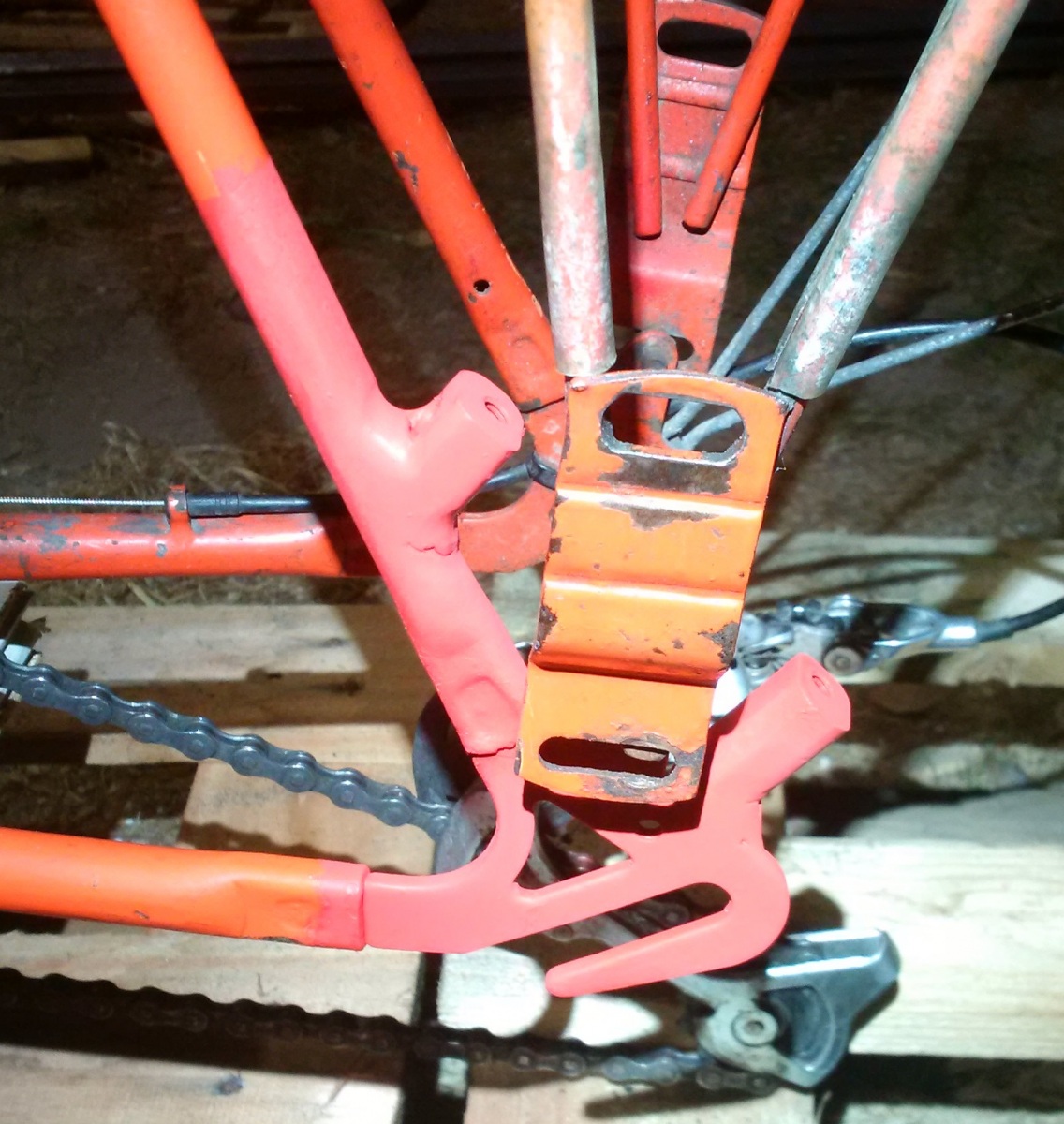 Największą i jedyną trudność sprawiło zrobienie samego mocowania Post Mount (o zaletach nad IS pisali inni, więc nie będę ich powielał). Z uwagi na wymiar i przenoszone siły musiał być to materiał lity. Źródłem była rączka starego klucza fajkowego, która po obróbce okazała się bardzo dobrym rozwiązaniem.